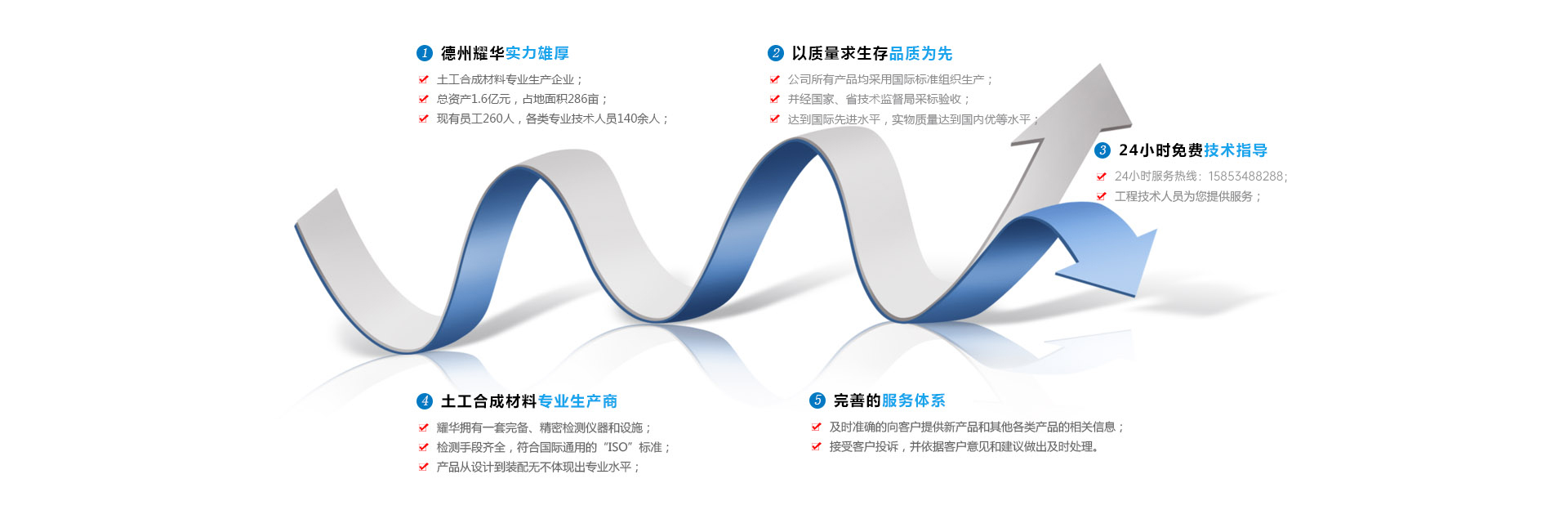 德州耀華土工材料有限公司是目前全國較大、品種其全的土工合成材料專業(yè)生產(chǎn)企業(yè),主要產(chǎn)品有復(fù)合土工膜、HDPE土工膜、長絲土工布、防草布、防水土工布、水庫防滲膜、防水板、生態(tài)袋、三維復(fù)合排水網(wǎng)、長絲機(jī)織土工布、EVA土工膜、無紡布、6.2m寬幅短纖針刺無紡布、6.0m寬幅土工膜、復(fù)合防水板、6.0m幅寬長絲土布等。本公司有年產(chǎn)萬噸滌(丙)短纖維兩用生產(chǎn)線、無紡布、PE防水板、復(fù)合膜等10余條生產(chǎn)線,工藝技術(shù)先進(jìn)。HDPE土工膜、復(fù)合土工膜價(jià)格低廉...【更多】